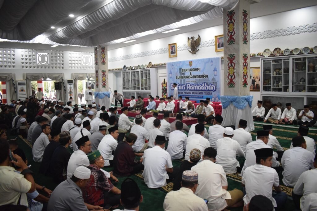Sejak pukul 16.00 WIB, satu per satu undangan berdatangan. Hadir Gubernur Kalimantan Tengah, Agustiar Sabran, didampingi Wakil Gubernur Edi Pratowo dan Plt. Sekretaris Daerah Leonard S. Ampung. Jajaran Forum Koordinasi Pimpinan Daerah (Forkopimda), pimpinan instansi vertikal, tokoh agama, tokoh adat, akademisi, hingga tokoh masyarakat turut memenuhi undangan. Ramadan sore itu menjadi ruang temu lintas elemen pemerintah, ulama, dan masyarakat dalam satu hamparan nilai yang sama: silaturahmi.