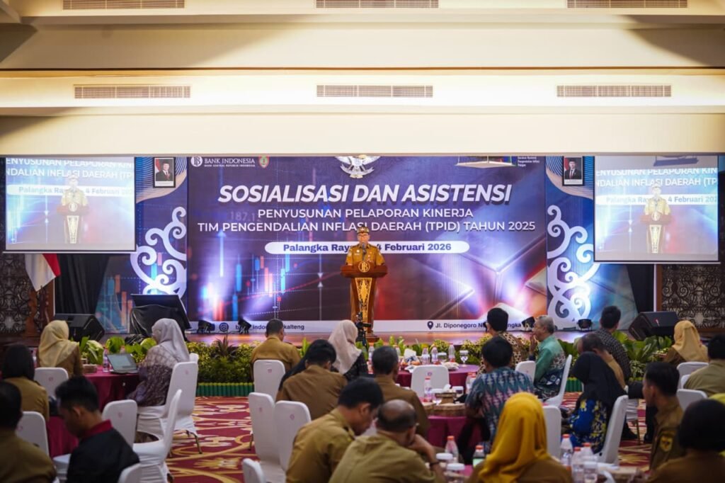 PALANGKA RAYA – Pemerintah Provinsi Kalimantan Tengah menegaskan komitmennya dalam menjaga stabilitas harga dan pengendalian inflasi daerah di tengah tantangan ekonomi global yang kian kompleks. Hal tersebut disampaikan Pelaksana Tugas (Plt) Sekretaris Daerah Kalimantan Tengah, Leonard S. Ampung, saat menghadiri kegiatan Sosialisasi dan Rapat Asistensi Penyusunan Pelaporan Kinerja Tim Pengendalian Inflasi Daerah (TPID) se-Kalimantan Tengah mewakili Gubernur Kalteng yang digelar di Aula Betang Hapakat Lantai 4 Kantor Perwakilan Bank Indonesia Provinsi Kalimantan Tengah, Kota Palangka Raya, Selasa (3/2/2026).