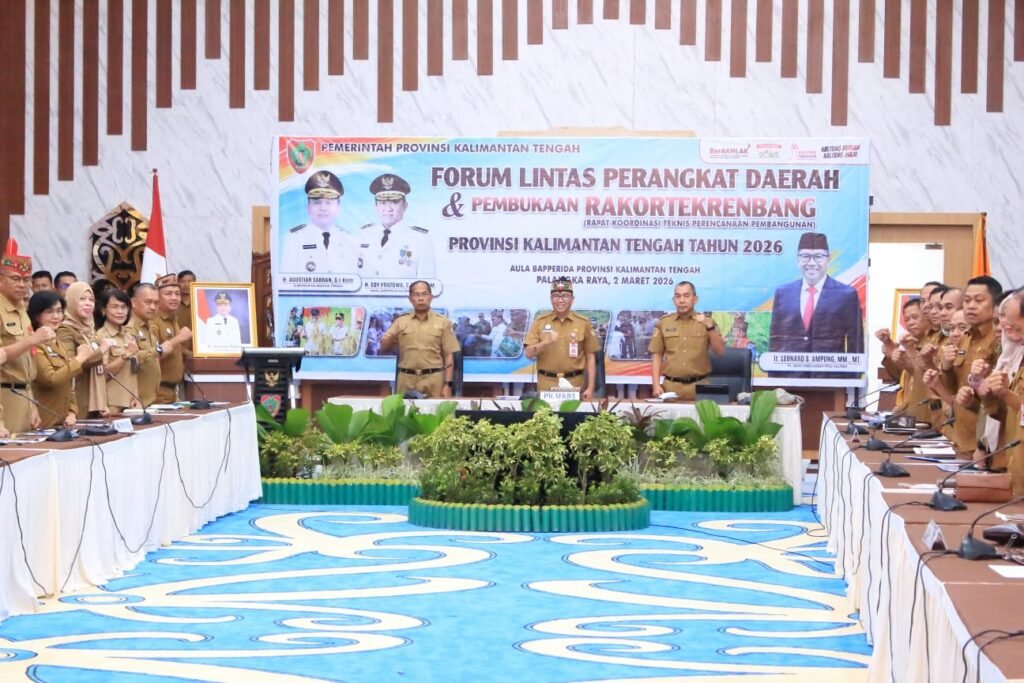 PALANGKA RAYA – Pemerintah Provinsi Kalimantan Tengah (Pemprov Kalteng) resmi membuka Forum Lintas Perangkat Daerah dan Rapat Koordinasi Teknis Perencanaan Pembangunan (Rakortekrenbang) Tahun 2026 di Aula Bapperida, Kota Palangka Raya, Senin (2/3/2026).